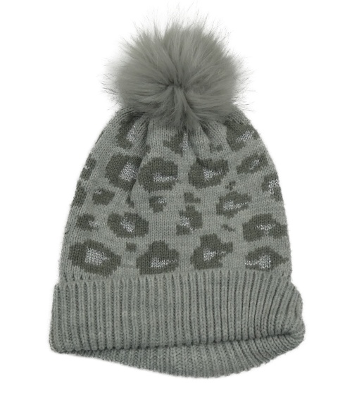 Sivo-tmavošedo-strieborná vzorovaná melírovaná čapica s brmbolcom