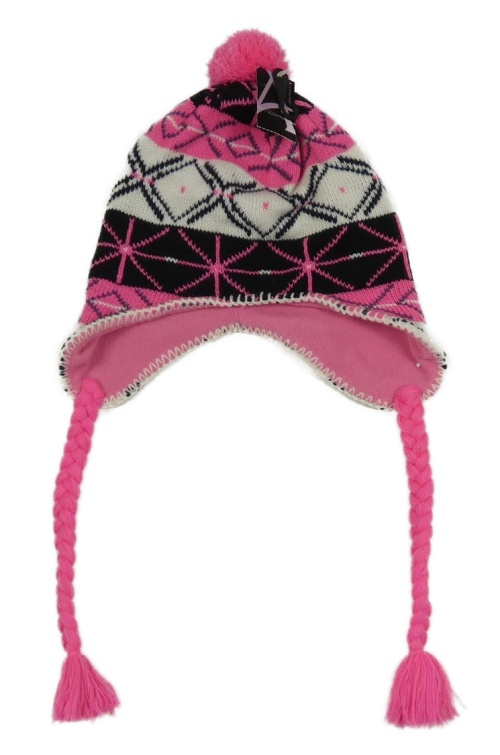 Nové - Černo-růžovo-bílá vzorovaná pletená podšitá ušanka Accossories