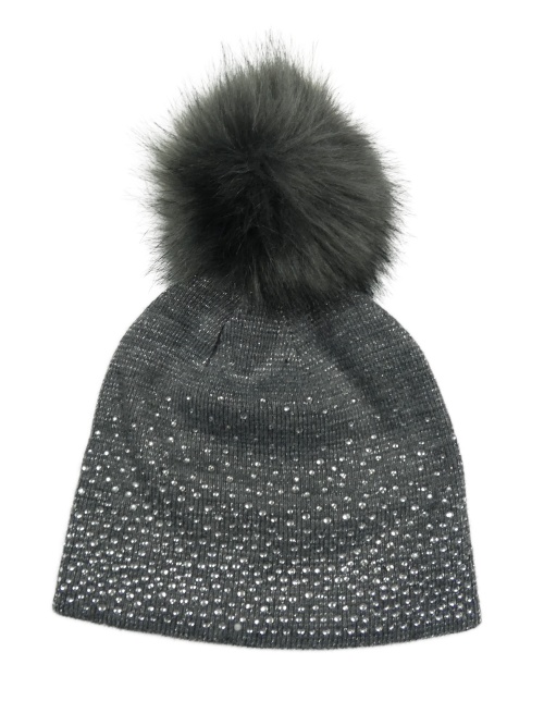 Sivo-strieborná pletená čapica s kamienkami a brmbolcom