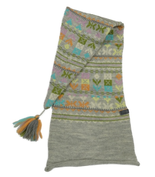 Sivá melírovaná vzorovaná pletená dlhá čapica s kvietkami a brmbolcom Steffner
