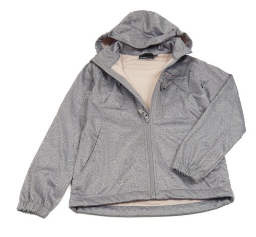 Sivo-svetloružová melírovaná softshellová bunda s kapucňou