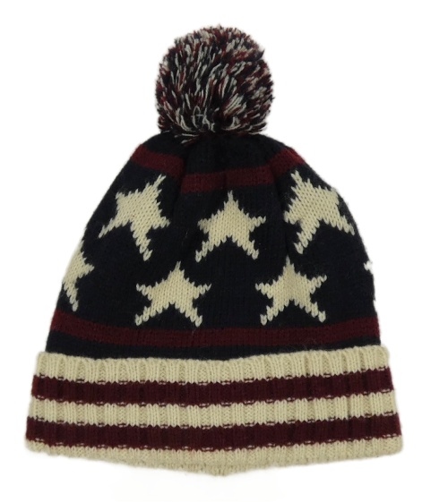 Nové - Tmavomodro-bielo-vínová hviezdičkovaná čapica s brmbolcom