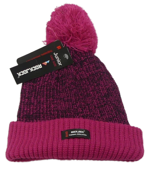 Nové - Fuchsiovo-čierna melírovaná pletená čapica s brmbolcom
