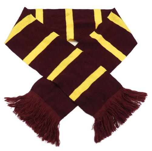 Vínovo-žltá pruhovaná pletená šál s strapcemi