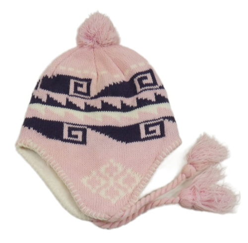 Ružovo-fialová vzorovaná čapica s bambulemi
