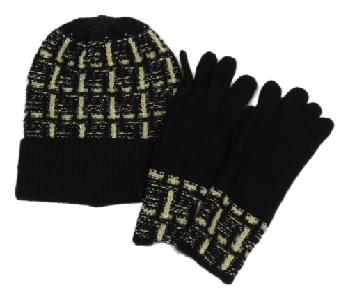 2Set - Černo-zlato-smetanová čepice + prstové rukavice Bonmarche