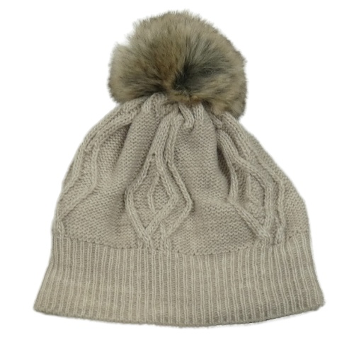 Svetlobéžová melírovaná vzorovaná vlnená čapica s brmbolcom