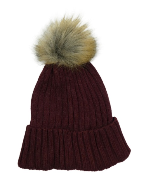 Mahagónovoá rebrovaná čapica s brmbolcom PRIMARK