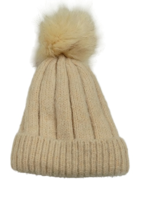 Svetlobéžová pletená zateplená čapica s brmbolcom