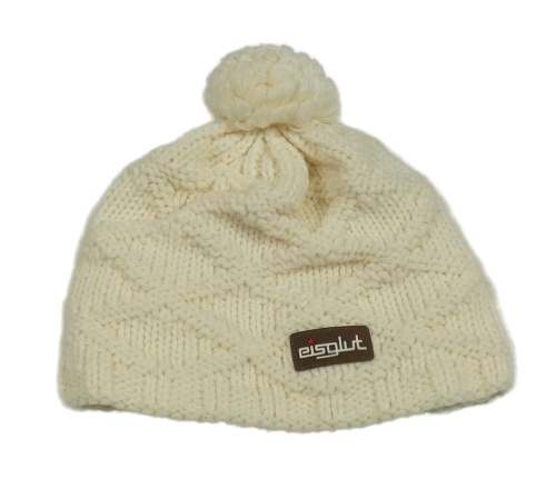 Smotanová pletená vlnená čapica s nášivkou a brmbolcom