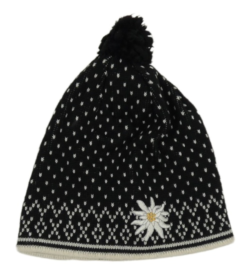 Čierno-biela vzorovaná čapica s kvietkom a brmbolcom