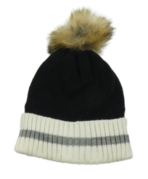 Čierno-biela pletená zateplená čapica s brmbolcom