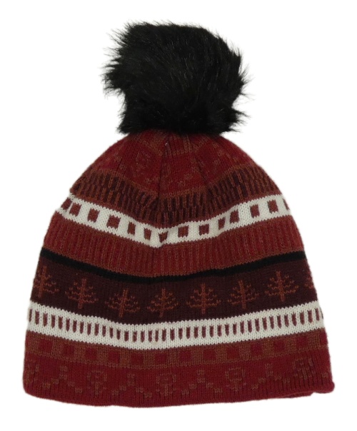 Vínovo-hnedá vzorovaná čapica s brmbolcom