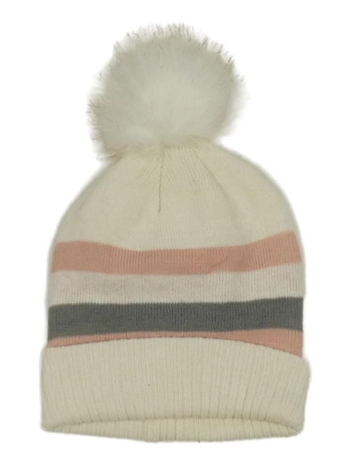 Smetanovo-ružovo-sivá čapica s pruhmi a brmbolcom