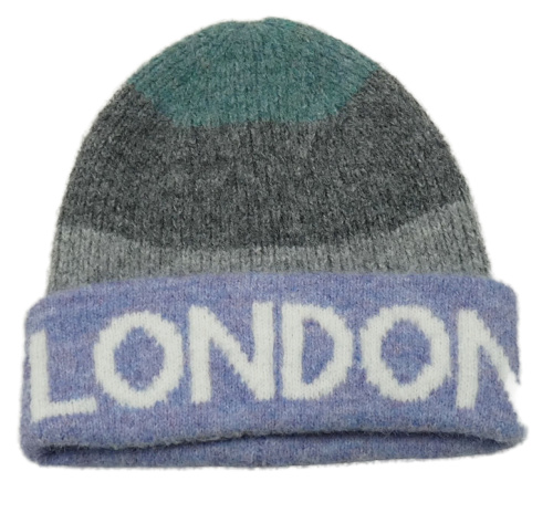 Tmavošedo-sivo-fialovo-modrozelená melírovaná vlnená čapica s nápisom