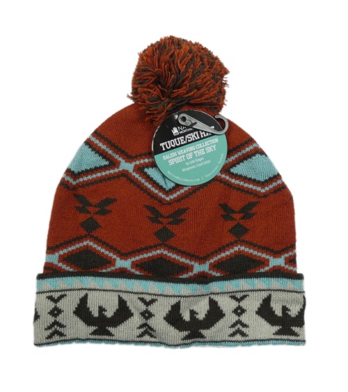 Nové - Rezavo-farebná vzorovaná pletená čapica s brmbolcom
