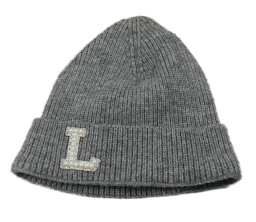 Sivá melírovaná rebrovaná čapica s písmenem z kamínků a perel Y.F.K.