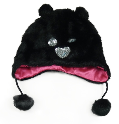Čierna kožušinová čapica s ňufáčikom a bamulemi