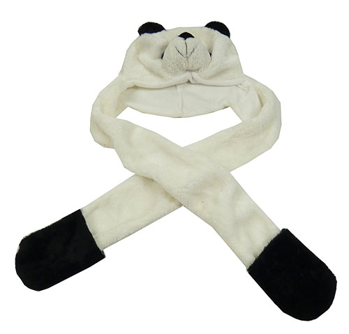 Smetanovo-čierna chlpatá čapica so šálou - panda