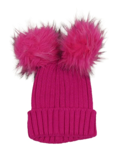 Tmavoružová pletená čapica s bambulemi