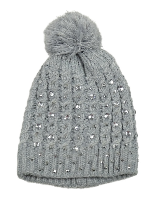 Sivá pletená čapica s kamienkami a brmbolcom