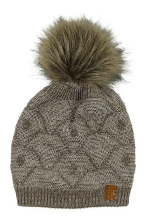 Béžová vzorovaná vlnená čapica s brmbolcom