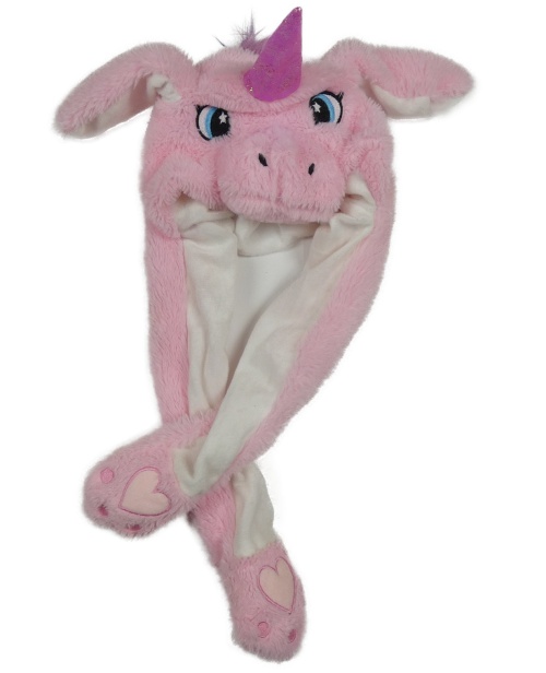 Ružová chlpatá čapica s rohem - jednorožec