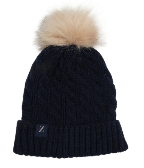 Tmavomodrá vzorovaná pletená čapica s brmbolcom