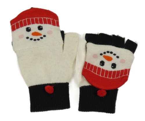Černo-bílo-červené překlápěcí rukavice - sněhulák