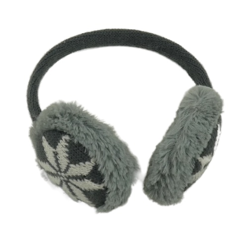 Šedo-bílé pletené sluchátka s hviezdou a kožešinou