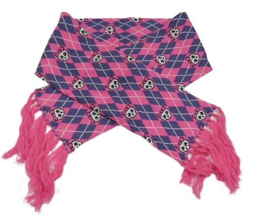 Tmavorůžovo-fialovo-biela károvaná šál s lebkami a strapcemi