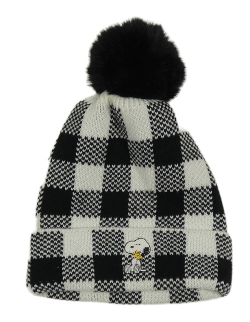 Čierno-biela kockovaná čapica so Snoopym a brmbolcom