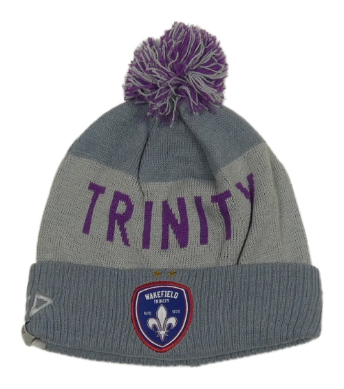 Sivá pletená čapica s nápisom a brmbolcom