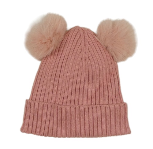 Staroružová rebrovaná pletená čapica s bambulemi Topolino
