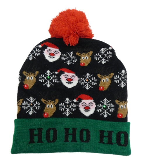 Nové - Čierno-zelená pletená čapica so Santy a sobmi