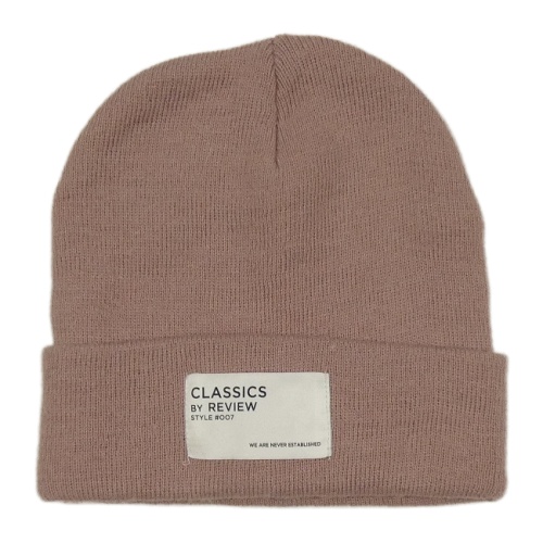 Staroružová pletená čapica s nášivkou