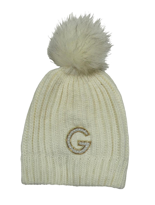 Smotanová pletená čapica s písmenem s kamienkami a perlami