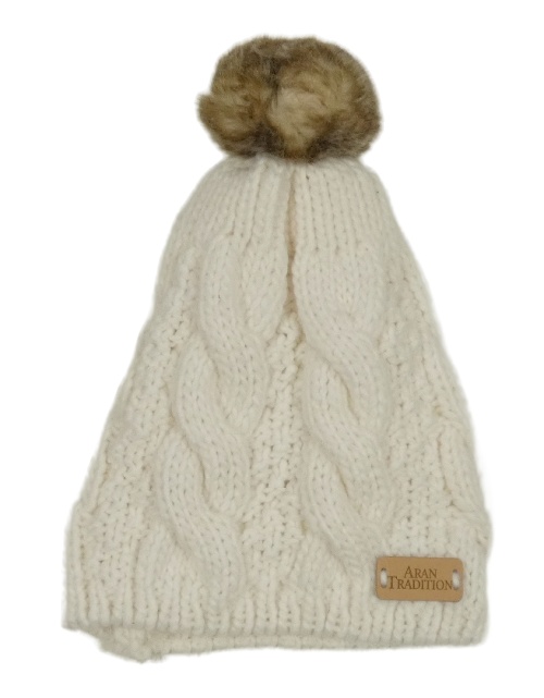 Biela vzorovaná čapica s brmbolcom