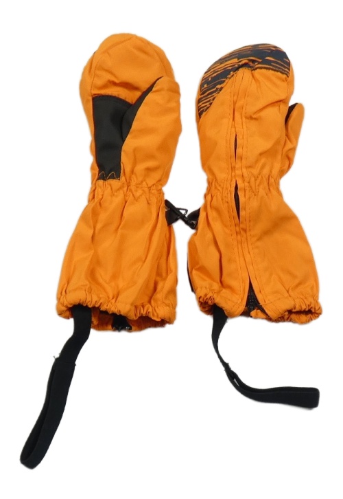 Oranžovo-černé šusťákové zimní palcové rukavice so vzorom