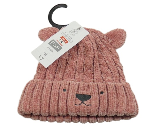 Nové - Ružová žinylková čapica s medvěďom F&F vel.146-158