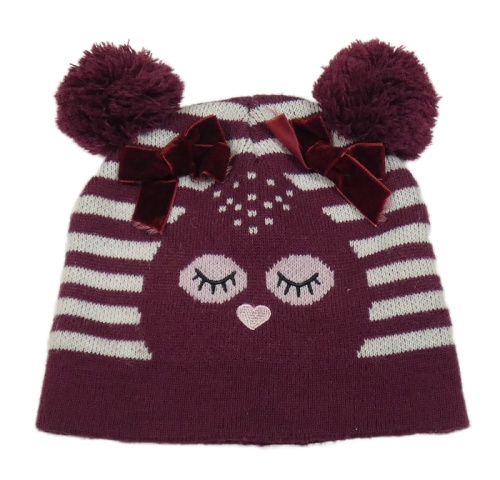 Vínovo-biela pruhovaná pletená čapica so sovou X-mail