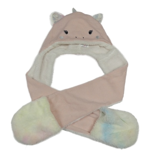 Svetloružová pletená podšitá čapica so šálou - mačka M&Co.