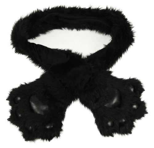 Čierna kožušinová zateplená šál s rukavice - packa