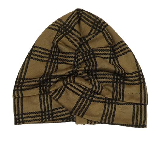 Hnedo-čierna kockovaná čapica s uzlom