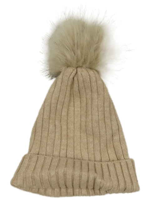 Béžová rebrovaná pletená čapica s brmbolcom Primark