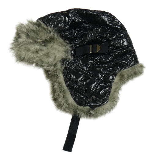 Černá prošívaná lesklá šusťáková beranice s kožešinou