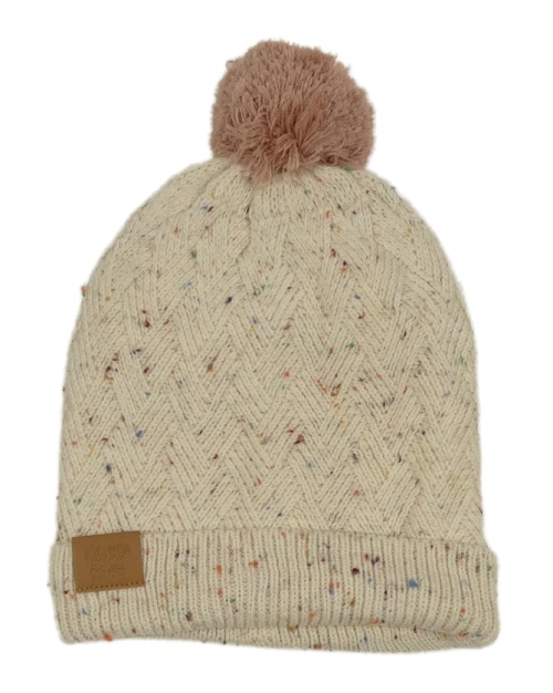 Pudrovo-farebná melírovaná pletená podšitá čapica s brmbolcom