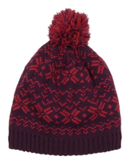 Fialovo-ružová vzorovaná čapica s vločkami a brmbolcom