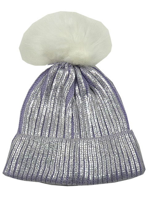 Lila-strieborná rebrovaná pletená čapica s brmbolcom Tu