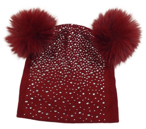 Červená čapica s kamienkami a bambulkami